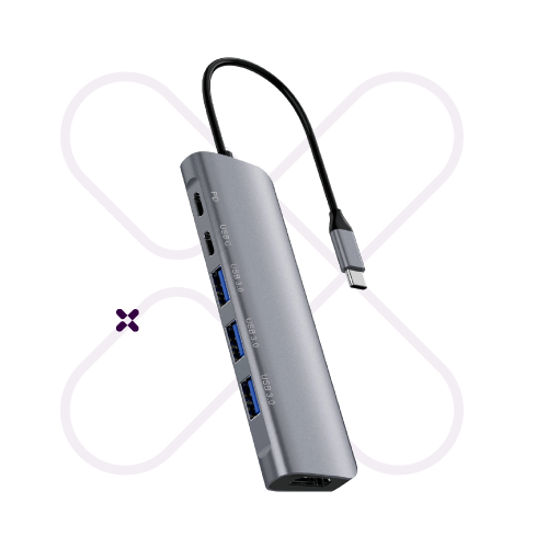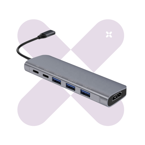 El Hubi C6 te ofrece múltiples soluciones de conectividad con un diseño súper elegante. Es compacto, muy sólido, y cuenta con tres puertos USB-A, un puerto USB-C, un puerto USB-C PD para carga rápida y un puerto HDMI para transmisión de video en súper alta resolución, ideal para dar el plus con una presentación memorable.